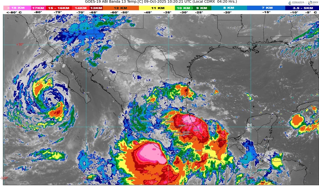 Una zona de baja presión con probabilidad para desarrollo ciclónico o posible ciclón tropical, se localizará frente a las costas de Guerrero y Michoacán, su extensa circulación y desprendimientos nubosos, en interacción con un canal de baja presión sobre el noreste y oriente del país, además de los desprendimientos nubosos de la vaguada monzónica en el Pacífico Sur Mexicano, mantendrán un temporal de lluvias muy fuertes a intensas en las regiones mencionadas, además del sur y sureste del territorio nacional.